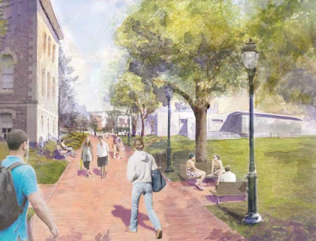 New academic buildings, more green space, and a network of tree-lined walkways are all part of the vision for a more environmentally- and pedestrian-friendly campus that reinforces Lafayette’s prestige as one of the most beautiful colleges on the East Coast.