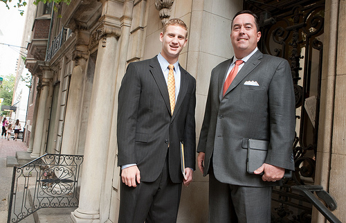 Bill Casey '85 (right) and Sam Feldbaum '11 at Locust Capital, Philadelphia.