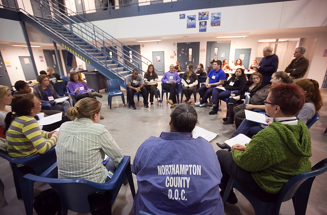 Lafayette students and inmates from Northampton County Prison meet weekly during the Women and the U.S. Criminal Justice System course taught by Bonnie Winfield, director of the Landis Community Outreach Center.