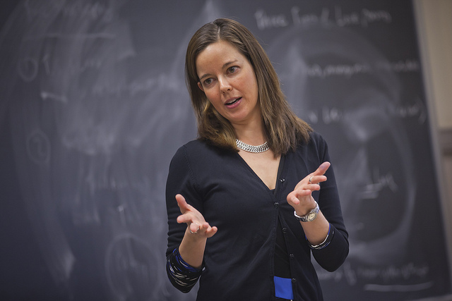 Alix Ohlin, associate professor of English, teaches a class in Pardee Hall.