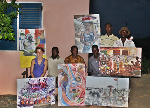 Lindsay Majno ’10 (far left) with artists who participated in the Ghana project.