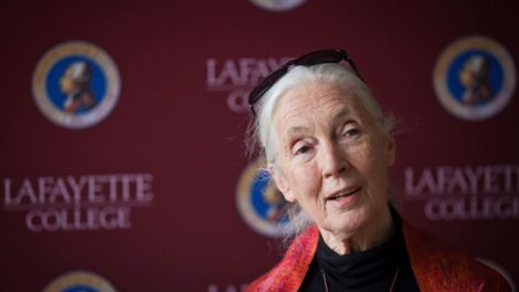 Legendary primatologist Jane Goodall delivered the Thomas Roy and Lura Forrest Jones Visiting Lecture at Lafayette College in 2013.